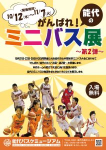 「がんばれ!能代のミニバス展~第2弾~」開催のお知らせ(10/12~11/7) 投稿者: hoophall2017/10/12お知らせ 2017年10月21日・22日・28日に開催される秋季ミニバス大会に合わせて、「がんばれ!!能代のミニバス展~第2弾~」を開催します。 市内チームの紹介パネルや過去大会等の戦績、ブルーインズが全国大会優勝を果たした時のトロフィーなど展示します。