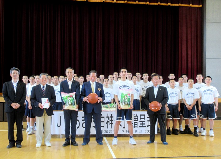 「JAあきた白神米」・「能代工業高等学校バスケットボール部後援会寄附金」贈呈式 投稿者: admin2019/07/09お知らせ 本日7月9日13時に、「JAあきた白神米」・「能代工業高校学校バスケットボール部後援会寄附金」の贈呈式が能代工業高校体育館にて行われました。 贈呈式では須藤主将が部員を代表し、贈呈されたJAあきた白神米を受け取っていました。 美味しいお米をたくさん食べて、是非、今年度の大会も戦い抜き、優勝を手にしてください!