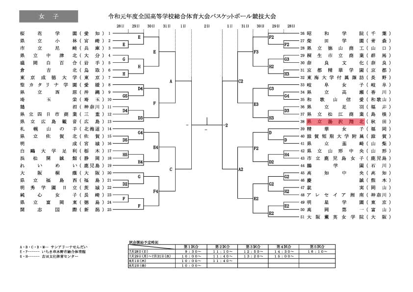 インターハイ組合せ決定のお知らせ(7/28~8/2)