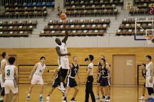 クリニックに続いて、午後からは能代科学技術高校とのエキシビジョンマッチが開催されました。ペッカーズには、多くの能代工OBが所属しており、この日は小室望海選手、斉藤大輔選手、石井淳一監督、黒政成広HCが来能しました。