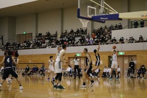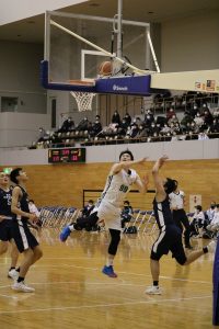 両チームにとって一般観客を入れた試合は久しぶりで、能代市民やバスケファンなど約230人が観戦。前半が終わって70-31とペッカーズの大量リードで折り返しましたが、3Qは34-29、4Qは29-21と能代科技も食らいつき、見ごたえのある展開となりました。