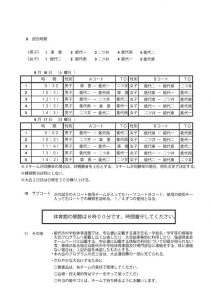 夏季中学総体のお知らせ(6/16~17) 投稿者: hoophall2018/06/082018/06/07お知らせ 第67回全県中学校総合体育大会能代市予選会が2018年6月16日(土)・17日(日)に能代市二ツ井町総合体育館で開催されます。 男女優勝チームには7月14日(土)~16日(月)に大館市のタクミアリーナで行われる秋田県中学総体への出場権が与えられます。 詳しくは能代市山本郡バスケットボール協会のHPをご覧ください。