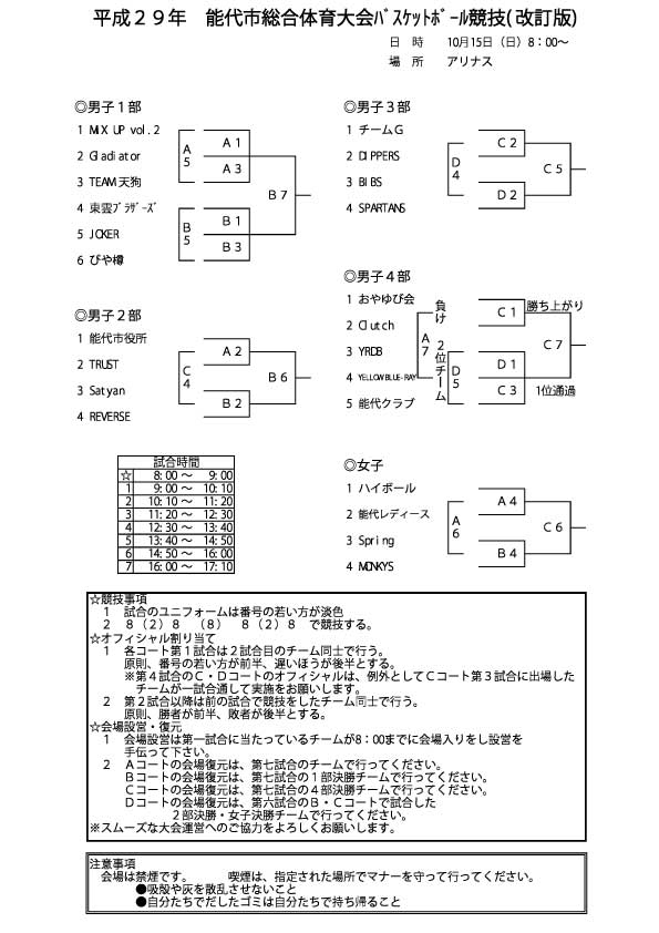 市総合体育大会バスケ大会のお知らせ(10/15)