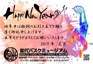 2019年1月11日(金)~1月14日(月・祝) 「能代バスケミュージアム大開放展in大会議室」開催のためバスケミュージアムは閉館。