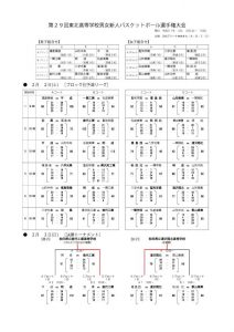 東北新人の結果(2/2~3) 投稿者: hoophall2019/02/042019/02/04お知らせ 2019年2月2日(土)~3日(日)に秋田市で開催された、第29回東北高等学校新人バスケットボール選手権大会の結果をお知らせします。 秋田県から出場の4校中、男子が能代工高・平成高、女子の湯沢翔北が決勝トーナメントに進出しました。 女子湯沢翔北は決勝で郡山商業(福島1位)を下し初優勝。男子能代工高は大差で明成(宮城1位)を2大会連続で下し10年ぶり16回目の優勝を飾りました。