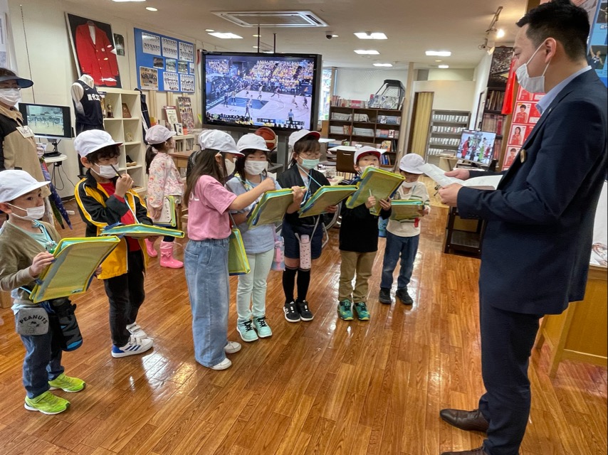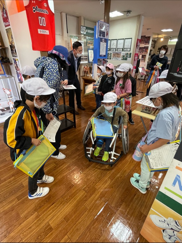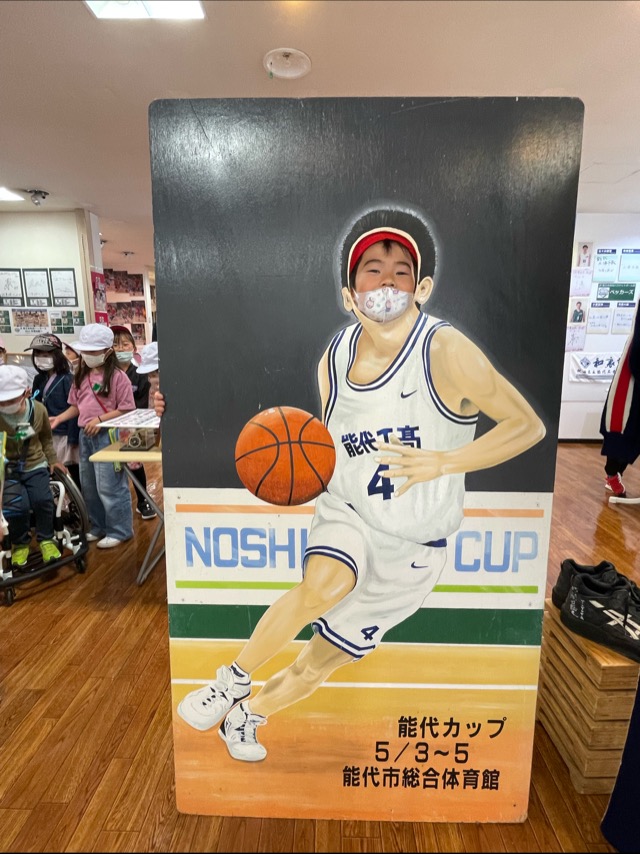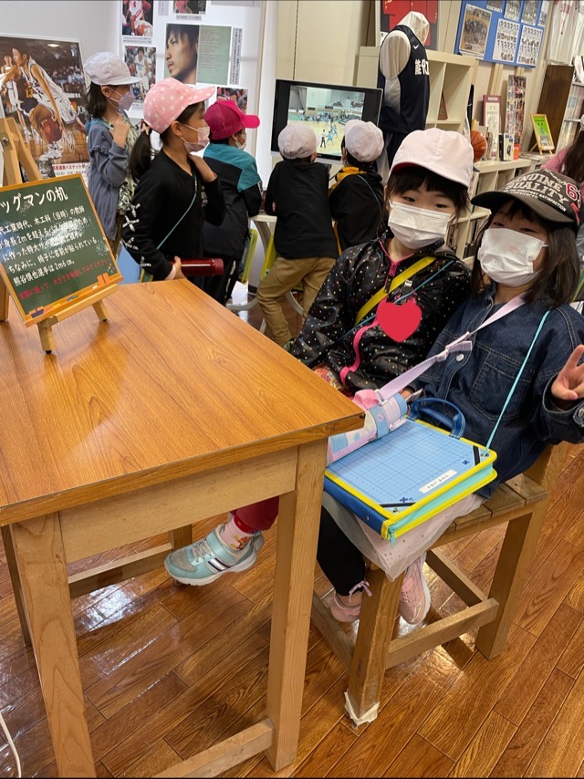 渟城南小2年生見学(6/3) 投稿者: hoophall2022/06/032022/06/03お知らせ 能代市の渟城南小2年生が「町たんけん」で見学に来てくれました。田臥勇太選手を知っている子も多く、さすが「バスケの街能代」の子どもたちです。 能代工業時代に教室で使っていたビッグマン用の特大机と椅子に座ってみたり、秋田ノーザンハピネッツの外国籍選手の34センチのバッシュを履いてみたりして、バスケ選手の大きさにびっくりした様子。 中でも盛り上がったのは、シュートゲーム対決!ミニバスをしている子もいて、シュートも上手でした! バスケに興味津々で元気いっぱいの皆さん、また遊びに来てくださいね! 車いすバスケ用の車いすに初挑戦! 顔出しパネルで能代工業の選手に! シュートゲームは真剣勝負! ビッグマン用のイスは、2人で座れる大きさ 34センチのバッシュを履いてポーズ! 職員に質問する子どもたち