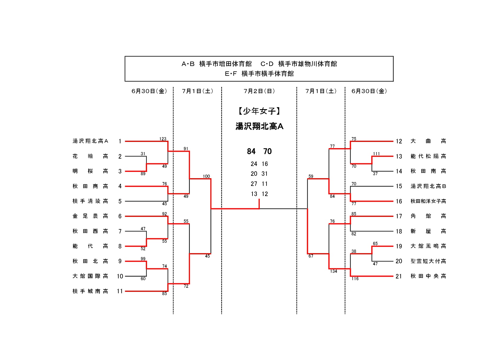 県民体育大会の結果(6/30~7/2)