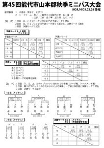 秋季ミニバス大会のお知らせ(10/21・22・28) 投稿者: hoophall2017/10/172017/10/16お知らせ 第45回能代市山本郡秋季ミニバス大会が、2017年10月21日、22日はアリナス、28日は琴丘総合体育館で開催されます。 男子8チーム、女子13チームが参加し、来年1月に秋田市で開催される全県大会への出場権(男子2、女子2)をかけた熱い戦いが始まります! 詳しくは能代市山本郡バスケットボール協会HPをご覧ください。