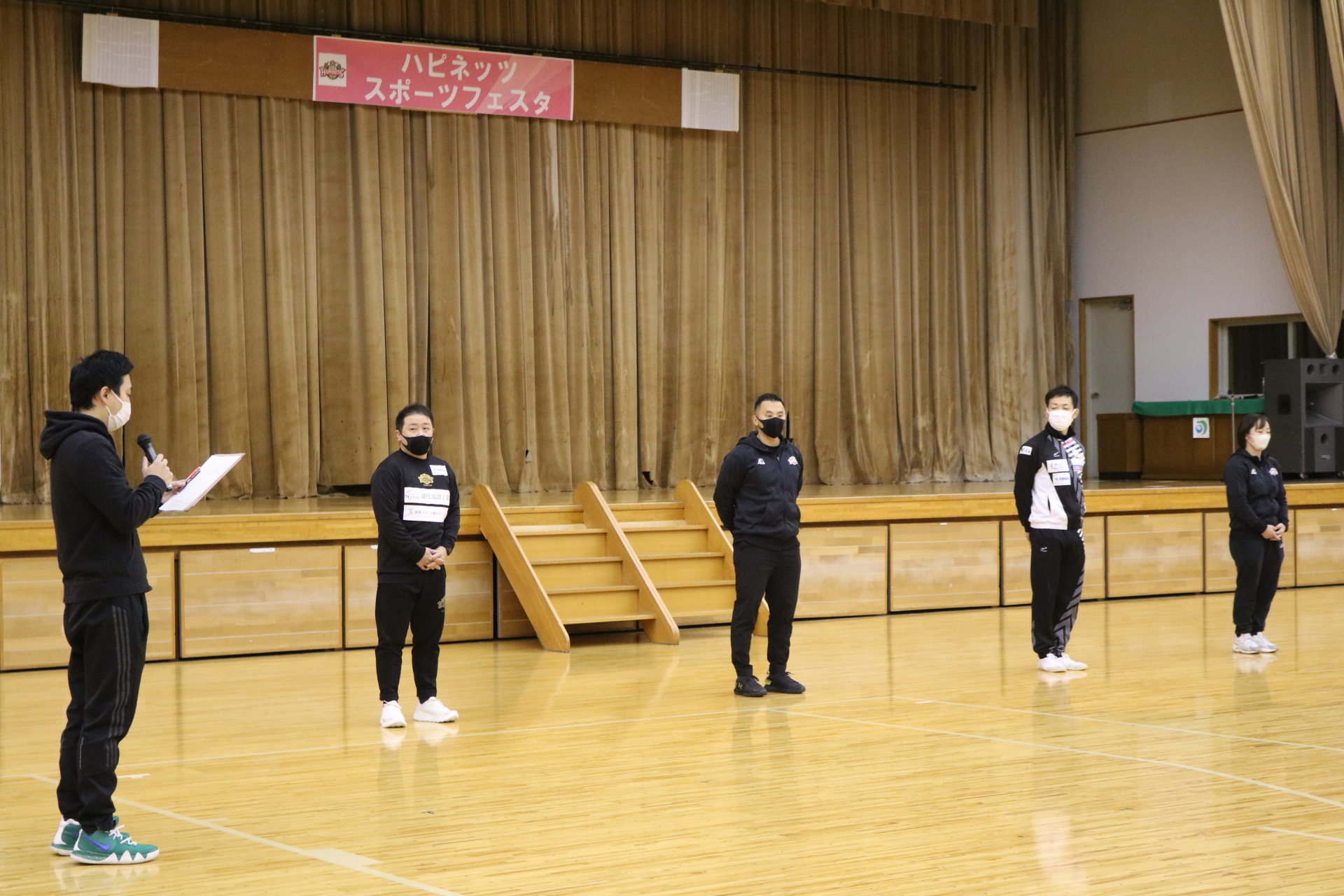 秋田ノーザンハピネッツからは、吉元悠U18ヘッドコーチ、田原慎太郎U15・U18ストレングス&コンディショニングコーチ、同社所属のラート競技の髙橋靖彦選手、レスリング競技の岩澤希羽選手が参加しました。