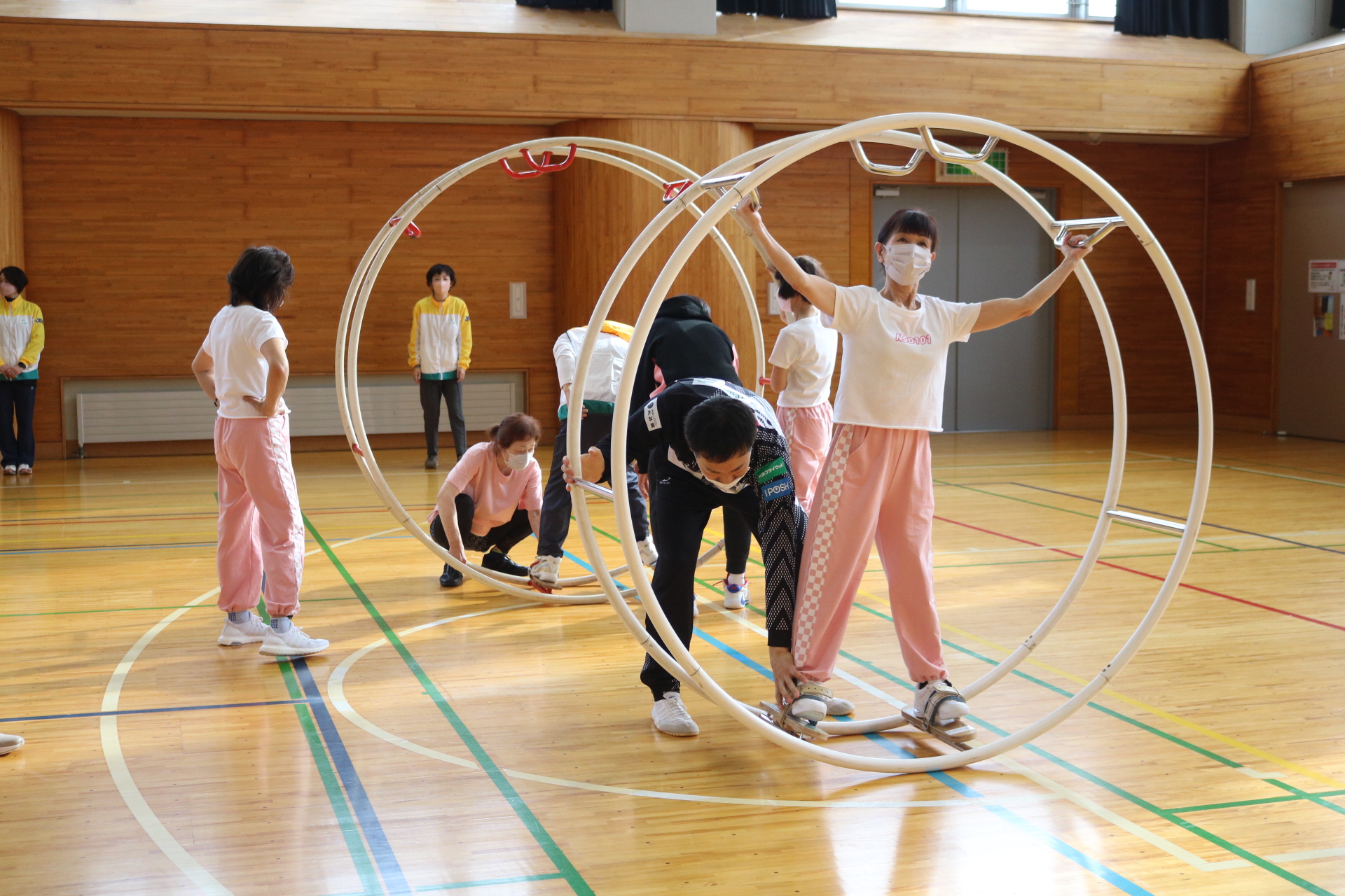 中学生を対象にしたバスケクリニックのほか、髙橋選手によるラート体験や現役チアによるチアダンス講習会などが開かれ、プロバスケットチームのスタッフから技術を学べる貴重な時間となりました。