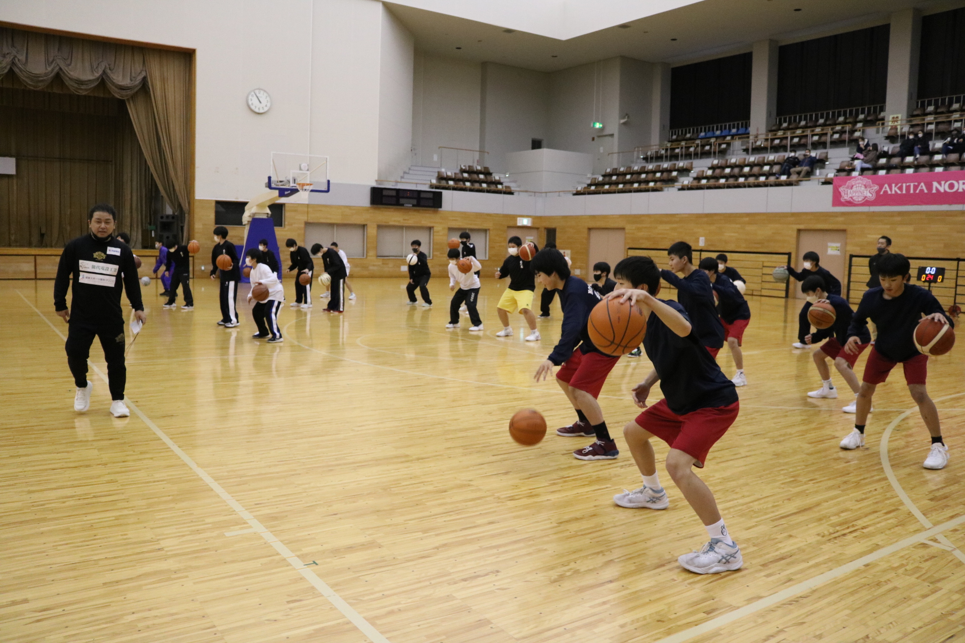 秋田ノーザンハピネッツスポーツフェスタが11/23日、能代市総合体育館で開催されました。「バスケの街能代」の事業の一環として能代市が主催したもので、市内の中学生やチアダンスチームのメンバーら約80人が一流のスキルを学びました。