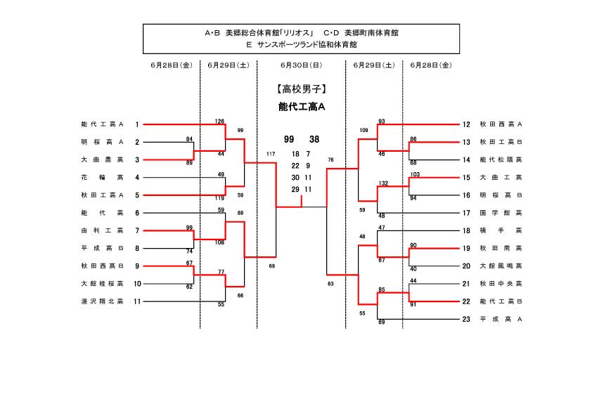 秋田県県民体育大会の結果(6/28~30)
