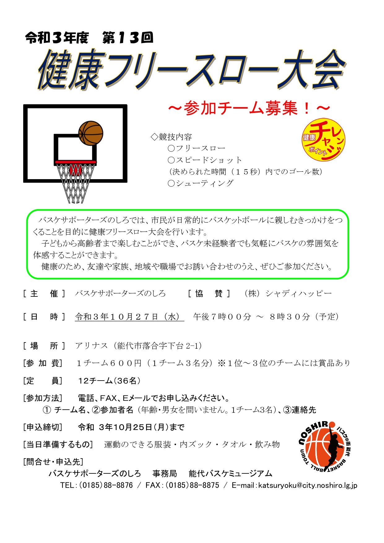 令和3年度 第13回 健康フリースロー大会参加申込書