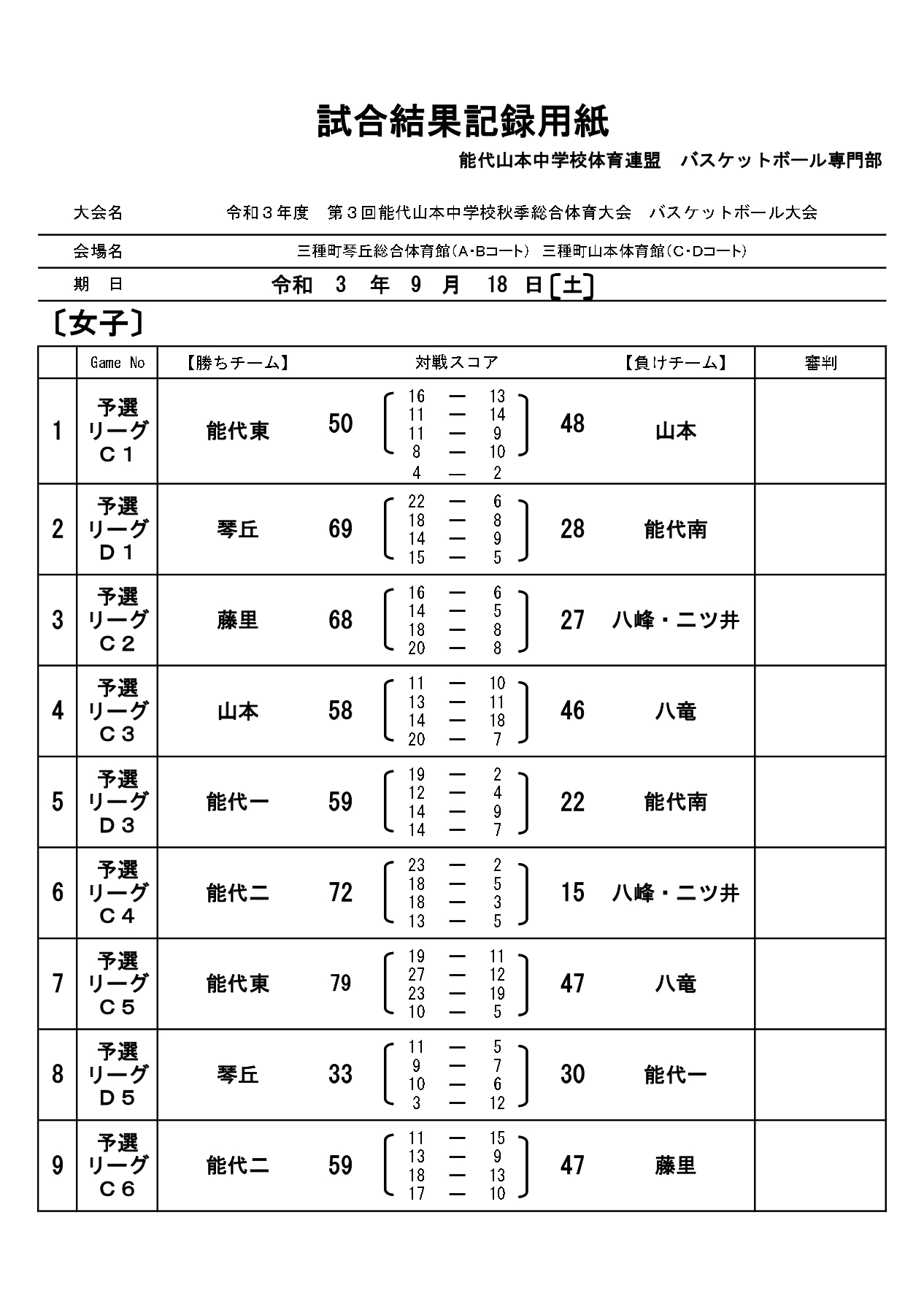 第3回能代山本中学校秋季総合体育大会が9月18日・19日、三種町の琴丘総合体育館、山本体育館で開催されました。