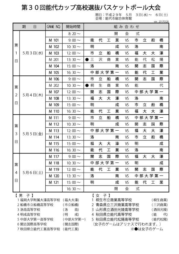 能代カップ日程