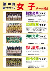 第30回能代カップ出場校紹介【女子編】