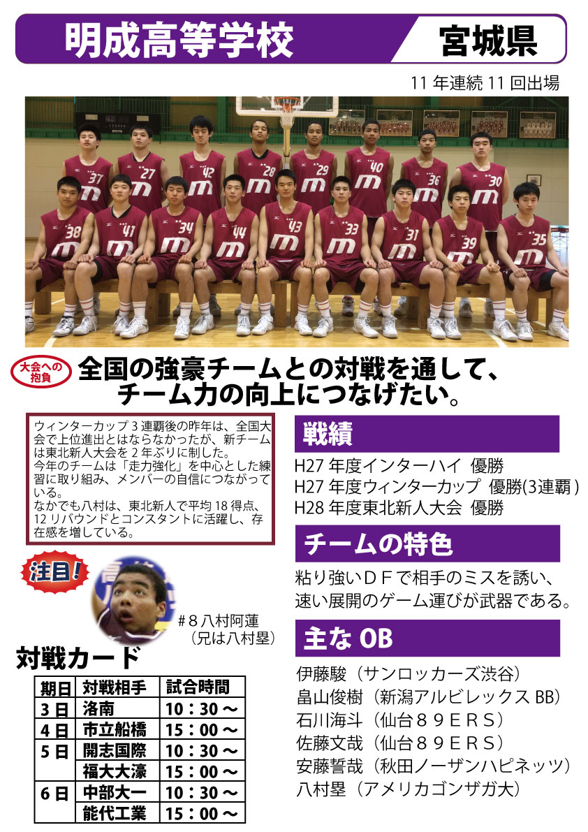 第30回能代カップ出場校紹介【明成編】