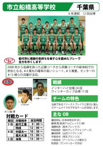 第31回能代カップ出場校紹介【市立船橋編】 投稿者: hoophall2018/04/292018/04/29お知らせ 第5弾は船橋市立船橋高等学校です。 観戦の参考にご覧ください。 本大会日程等詳しくは以下のホームページをご覧ください。 ・能代カップ公式サイト ・能代市バスケットボール協会・能代市【能代カップ情報】