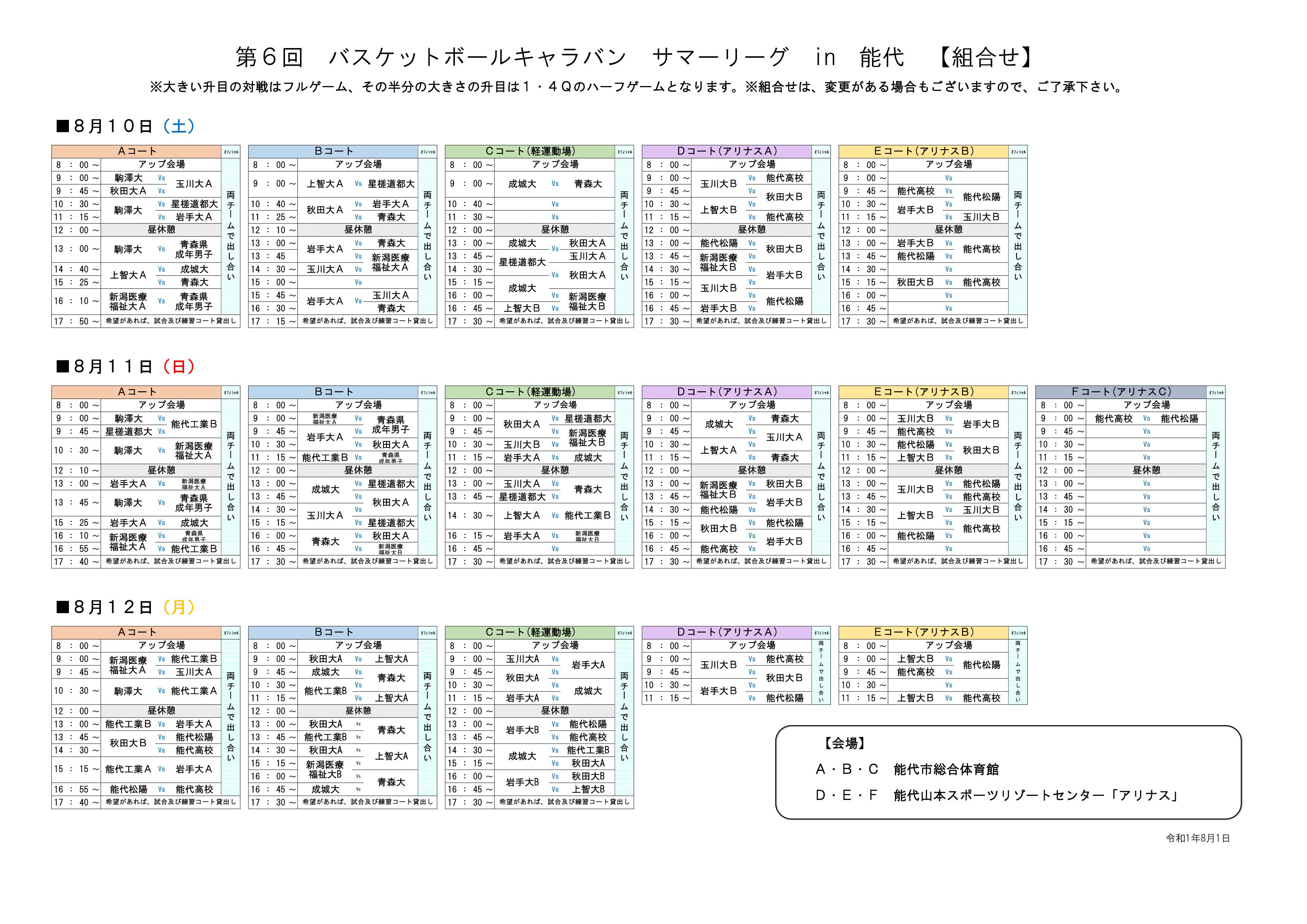 第6回バスケットボールキャラバン サマーリーグ in 能代(8/10~12)のお知らせ 投稿者: admin2019/08/07お知らせ 「第6回バスケットボールキャラバン サマーリーグ in 能代」が8月10日(土)~12日(月)にかけて能代市総合体育館および能代山本スポーツリゾートセンターアリナスで開催されます! 観戦無料となっておりますので、興味のある方、ぜひお立ち寄りください! 詳細は能代市体育協会のHPをご確認ください。