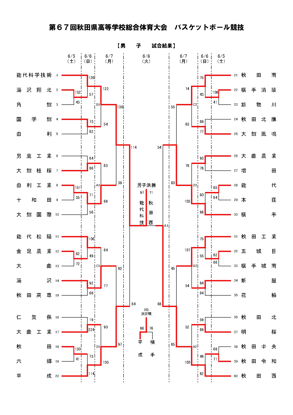 各試合のスコアなどは、秋田県バスケットボール協会公式サイトをご覧ください。