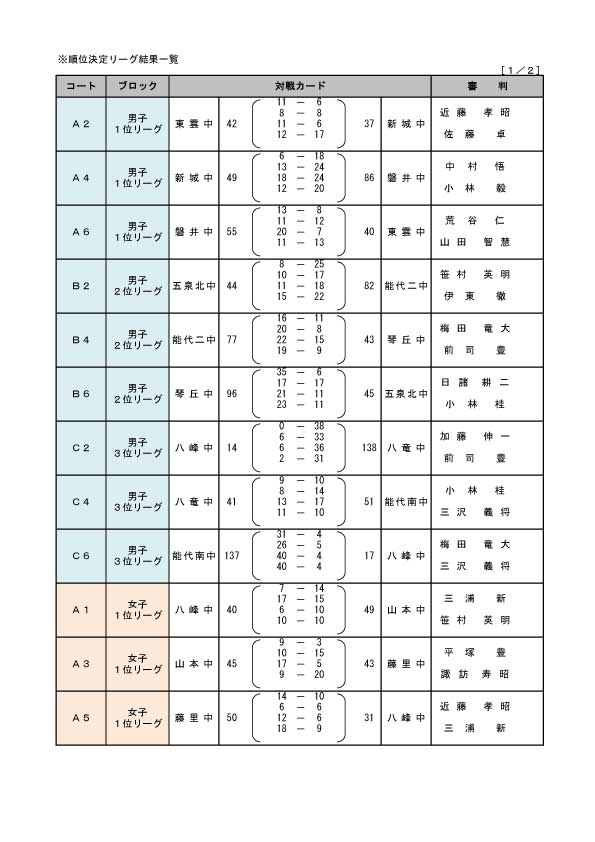 能代カップ中学校大会の結果(12/16~17)