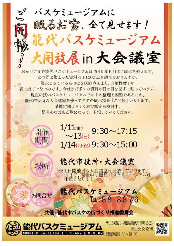 能代バスケミュージアム大開放展in大会議室のお知らせ(1/11~14)