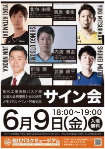6月10日(土)、11日(日)に開催される「能代工業バスケ部全国大会初優勝から50周年メモリアルイベント」に合わせて、Bリーグで活躍する能代工高OBのサイン会を開催します。