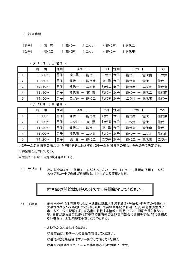 能代市中学春季大会のお知らせ(4/21~4/22)