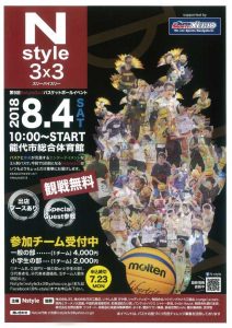 N-style 3×3バスケットボールイベントのお知らせ(8/4) 投稿者: hoophall2018/07/242018/07/24お知らせ 2018年8月4日(土)に能代市総合体育館で第5回N-style 3×3(スリーバイスリー)バスケットボールイベントが開催されます。 当初12チームの予定の一般が応募多数で15チームに増え、総勢80名ほどの参加者で行われる予定です。 多くの方の観戦をお待ちしています。観戦無料です! 詳しくはN-style facebookをご覧ください。