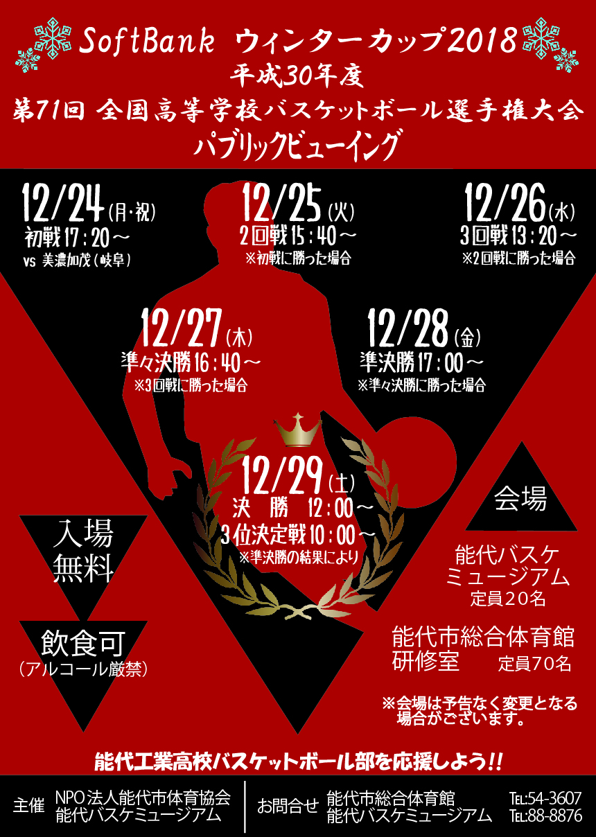 SoftBank ウィンターカップ2018パブリックビューイング開催(12/24~)