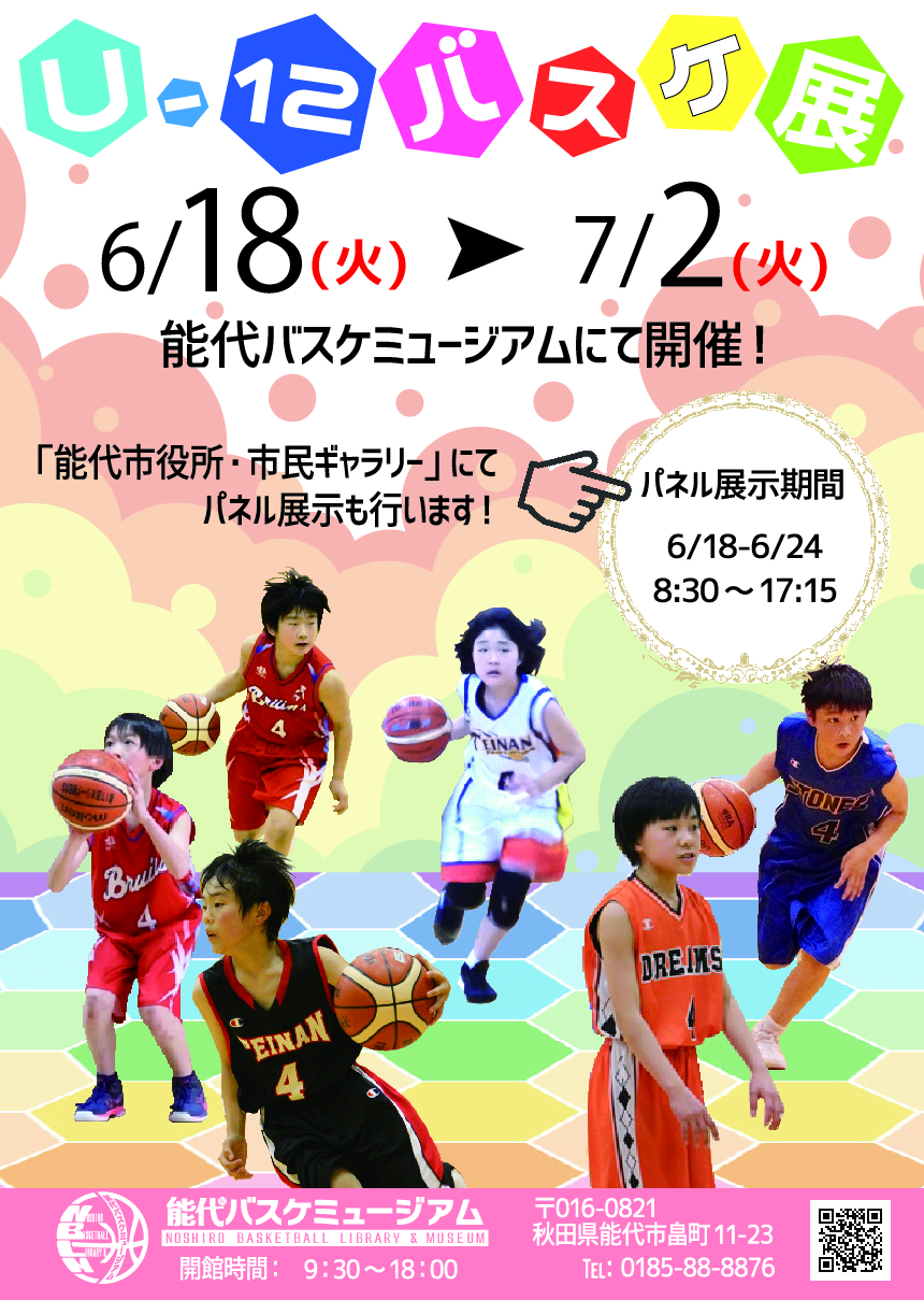 U-12バスケ展(6/18~7/2)開催のお知らせ 投稿者: admin2019/06/18お知らせ 本日6月18日(火)から7月2日(火)の間、能代バスケミュージアムにてU-12バスケ展を開催いたします! 並行して、6月18日(火)から6月24日(月)までの間、能代市役所・市民ギャラリーにてパネル展示も行いますので、是非一度足を運んでみてください!
